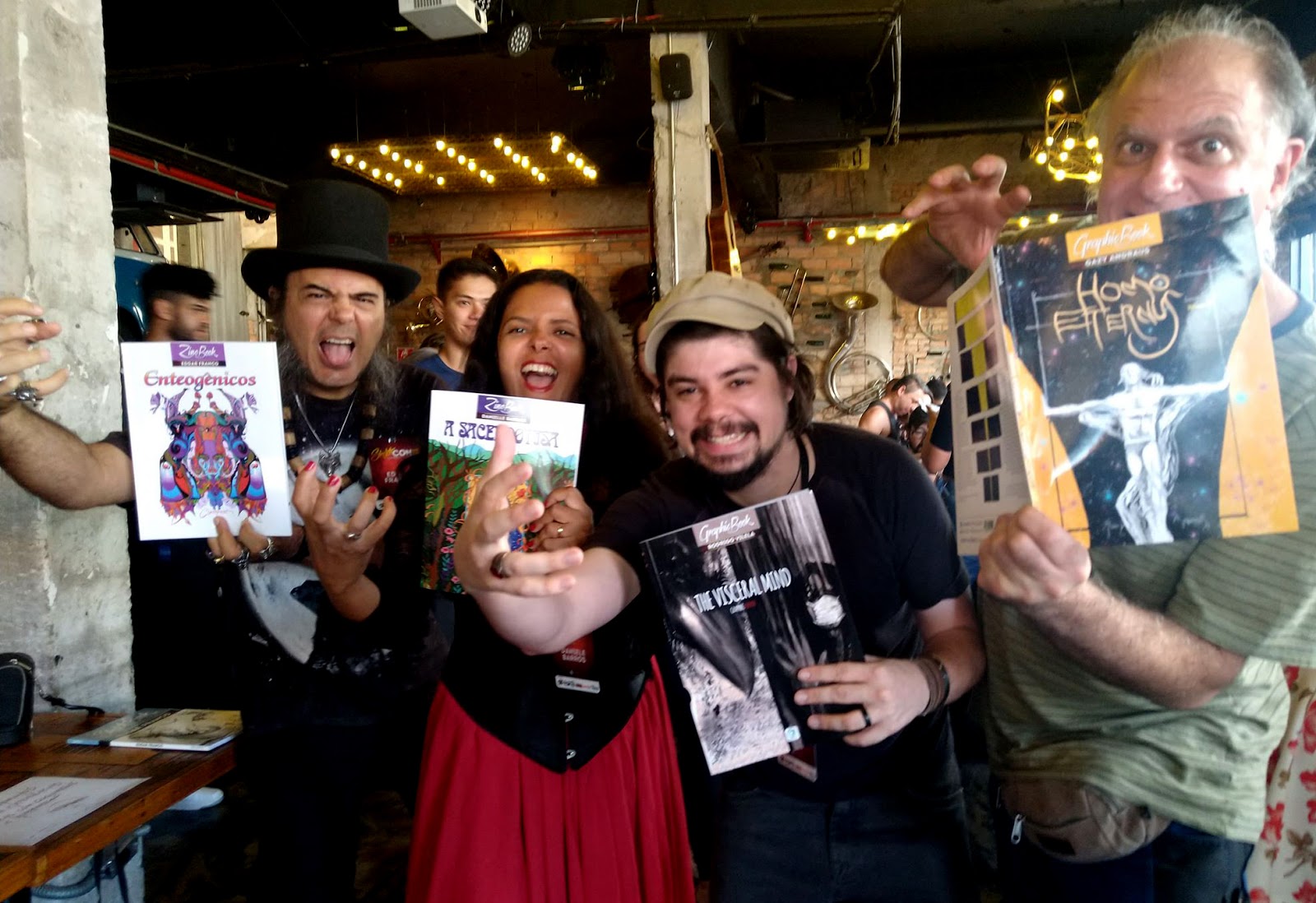 O Ciberpajé esteve presente no lançamento no Jazz Restô & Burger, próximo ao metrô Ana Rosa, em São Paulo, que aconteceu entre as 10hs e as 18hs. Foi um momento de rever grandes amigos, conhecer grandes mestres da HQ nacional, realizar "rituais de presença" autografando nos exemplares de vários amigos que foram lá prestigiá-lo e também usufruir da amizade no beco/ala dos quadrinhos poético-filosóficos no evento, composto por Gazy Andraus, IV Sacerdotisa Danielle Barros e Rodrigo Vilela, todos lançando seus novos álbuns - Gazy com "Homo Eternus II", IV Sacerdotisa com "A Sacerdotisa", e Rodrigo Vilela com "The Visceral Mind"! Confira na sequência fotos do evento, cliques da IV Sacerdotisa, de Gazy Andraus e do Ciberpajé.