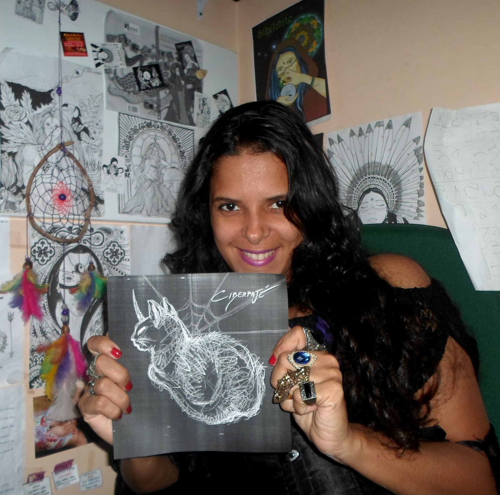 Gostaria de destacar a arte da capa criada pelo Ciberpajé, genial e belíssima, com a gata Ariel (se eu for falar do simbolismo do gato e a conexão com aspecto da espiritualidade, vida, morte, são mais 3 páginas de textos) e em comunhão com a teia da aranha, ficou uma simbologia forte e perfeita para o que a obra representa conceitualmente. Parabéns!