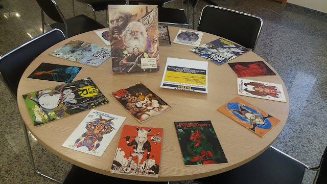 "Para tornar o sábado perfeito, evento Pequigibi, na biblioteca do SESC GO. Muito quadrinho autoral, além da oportunidade de trocar idéias com um pessoal bacana e pra lá de criativo. Conhecer a obra e o trabalho dos autores de Goiânia e de quebra lançamentos, algumas aquisições, trocas e uma palestra excepcional sobre os processos criativos na produção de HQ's. Minha gratidão a dois amigos especiais o professor Edgar Franco, pela instigante fala sobre arte, aurora pós-humana e processos composicionais envolvendo sua obra, e minha colega de pós e excelente contadora de histórias, Cátia Ana Baldoino da Silva. Por fim, deixo meu agradecimento aos organizadores do evento".
