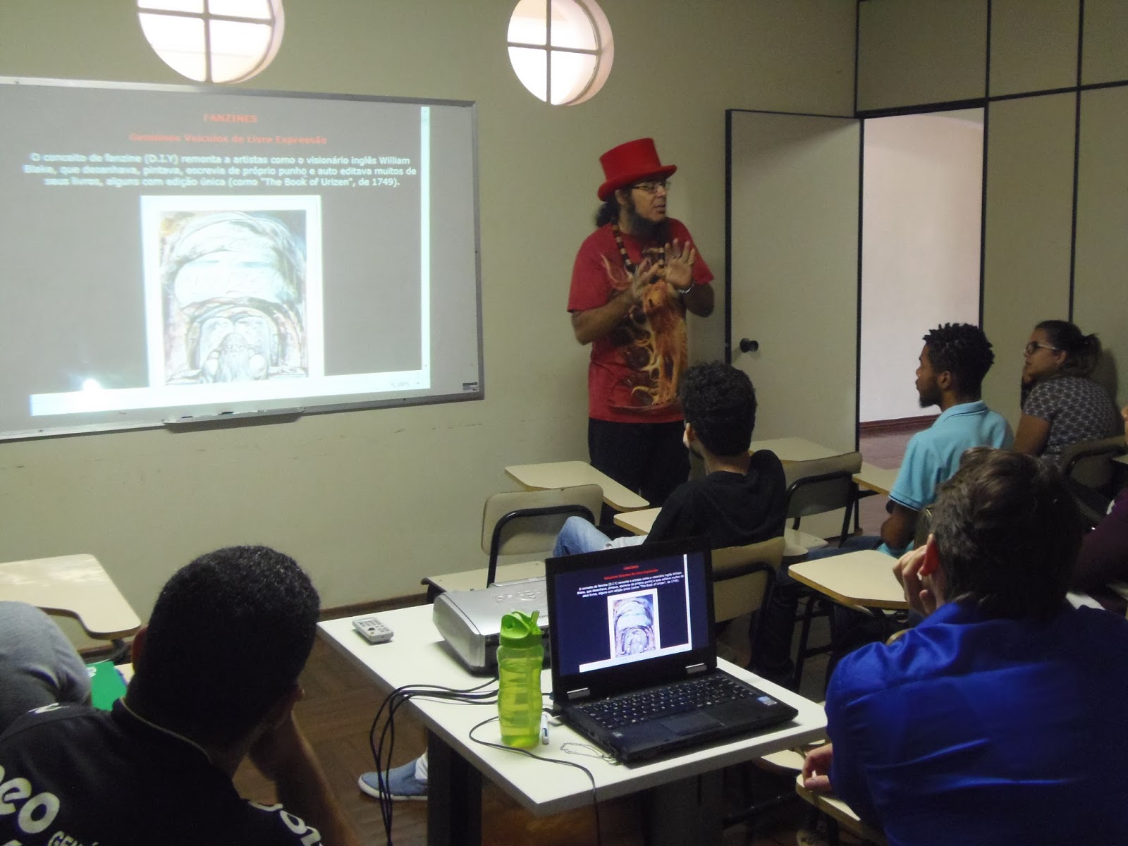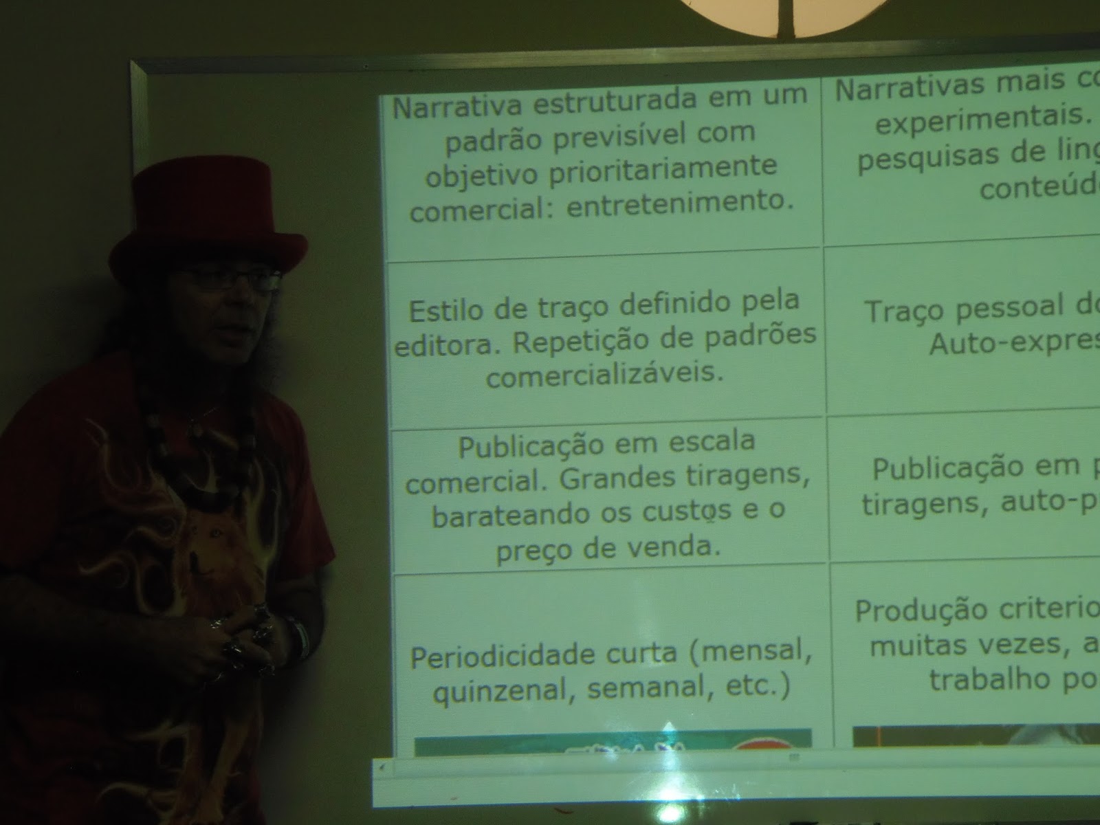 Entre os 31 alunos que estiveram presentes ao curso, estavam personalidades da cultura e do ensino em Anápolis como o Prof. Dr. Solemar Oliveira, a Profa. Dra. Débora Santos, o Msc. Tobias Goulão, a Msc. Pepita Afiune, a Msc. Lígia Carvalho, assim como grandes nomes da HQ anapolina como José Loures, Cláudio Dutra e Geraldo Monteiro, e jovens artistas emergentes como Marcus Vinicius Sartin, Luiz Antonio Martins Costa, entre outras feras. Foi uma honra e uma alegria para o Ciberpajé estar entre alunos tão incríveis e ele agradece a presença de todos os 31 alunos, o convite do Prof. Dr. Ademir Luiz e a acolhida carinhosa das funcionárias do Centro UEG Cultural - Anápolis. Seguem algumas fotos do curso gentilmente feitas por José Loures e Ademir Luiz.
