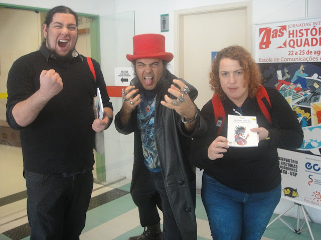 O trabalho intitulado "Quadrinhos Expandidos: Processos criativos de HQs poético-filosóficas utilizando ENOC - Estados Não Ordinários de Consciência" foi apresentado junto com outros importantes pesquisadores como Dr. Gazy Andraus e Drª Eleida Camargo, no eixo Quadrinhos, Literatura e Arte, e é tema do livro lançado durante as IV Jornadas Internacionais de Histórias em Quadrinhos (veja o post). Confira as fotos: