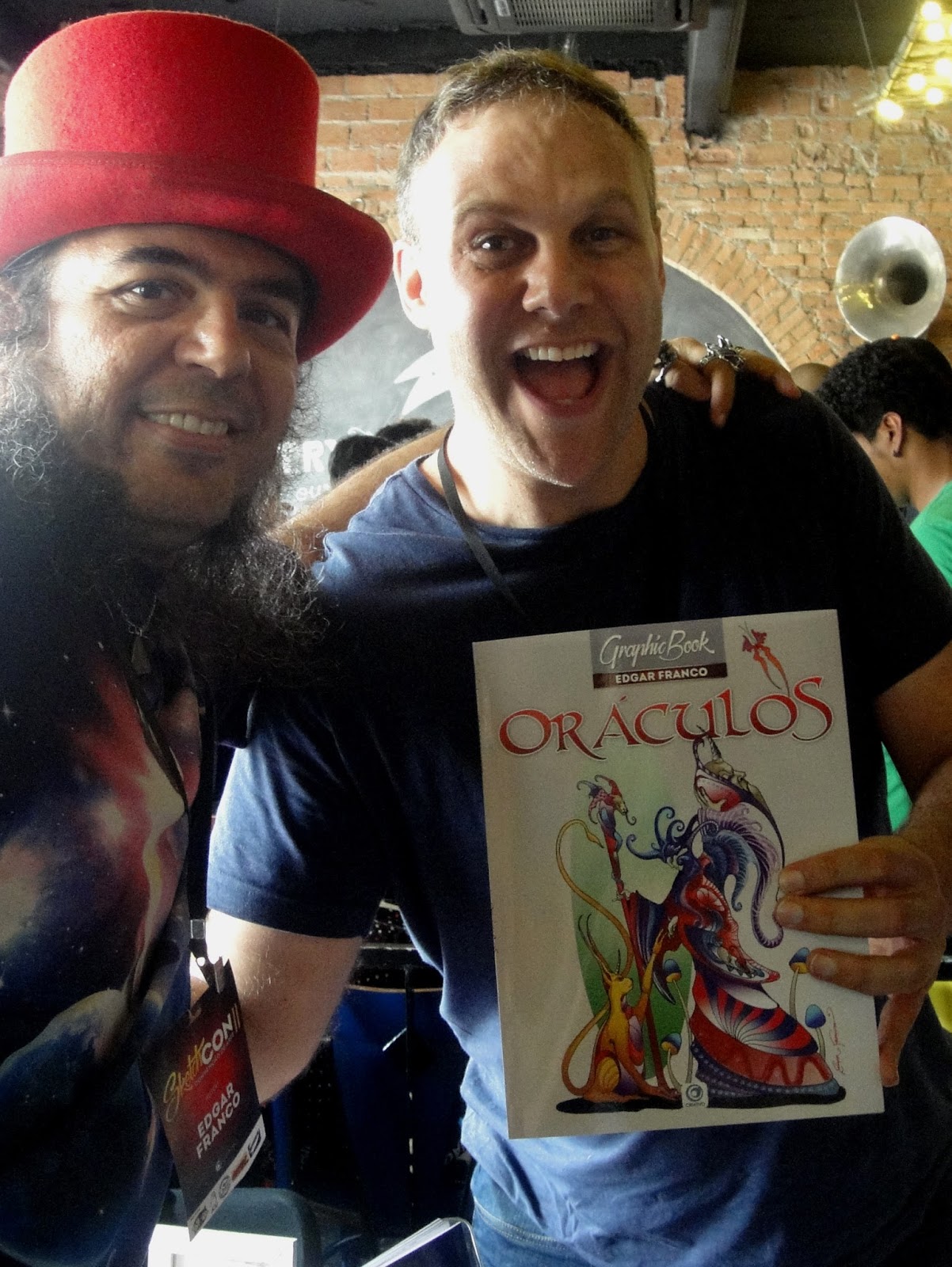 Eu com o grande roteirista, criador e amigo Alexandre Winck, durante o lançamento de meu novo álbum em quadrinhos "Oráculos", na Sketch Con II, em São Paulo. Winck é um dos mentores da lendária revista "Contos do Absurdo" e criador de universos ficcionais em roteiros brilhantes nos gêneros Horror e FC, para quadrinhos e cinema, recentemente começou inclusive a exportar suas criações para os EUA. Minha eterna gratidão a Alexandre por prestigiar as minhas obras e honrar-me com sua amizade!