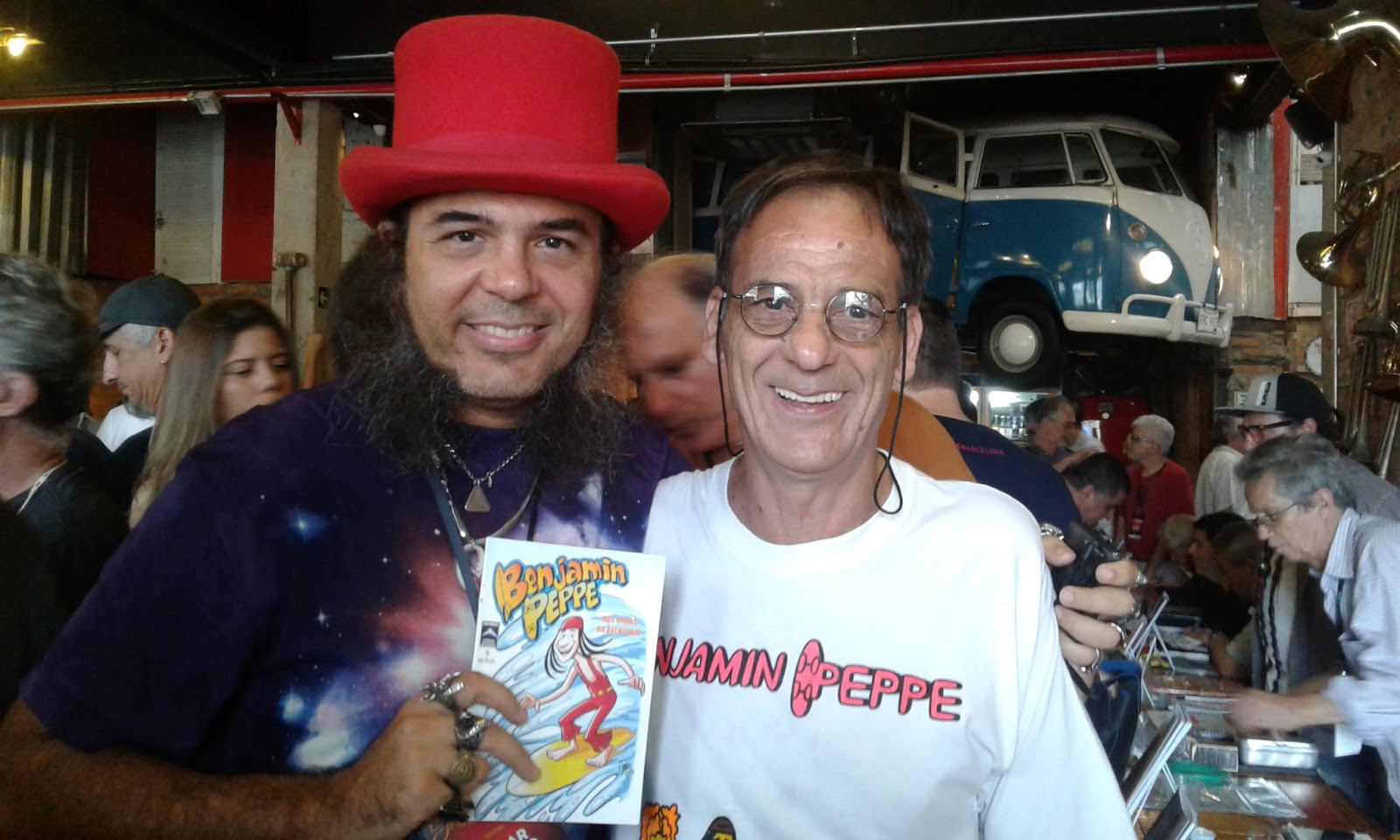 Com o fantástico quadrinhista Paulo Miguel Dos Anjos, autor do emblemático personagem Benjamin Peppe. Paulo presenteou-me com uma das novas revistas do personagem, publicando HQs desenvolvidas por múltiplos autores utilizando o universo ficcional de Peppe! Parabéns pela longevidade e qualidade de sua obra, amigo Paulo, sucesso sempre!