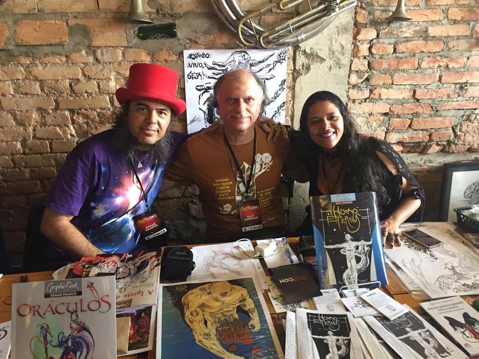 Com os amigos Helô Beraldo e Carlos que prestigiaram o meu lançamento durante a SketchCon II, em São Paulo. Gratidão, meus amigos, abraço afetuoso do Ciberpajé!